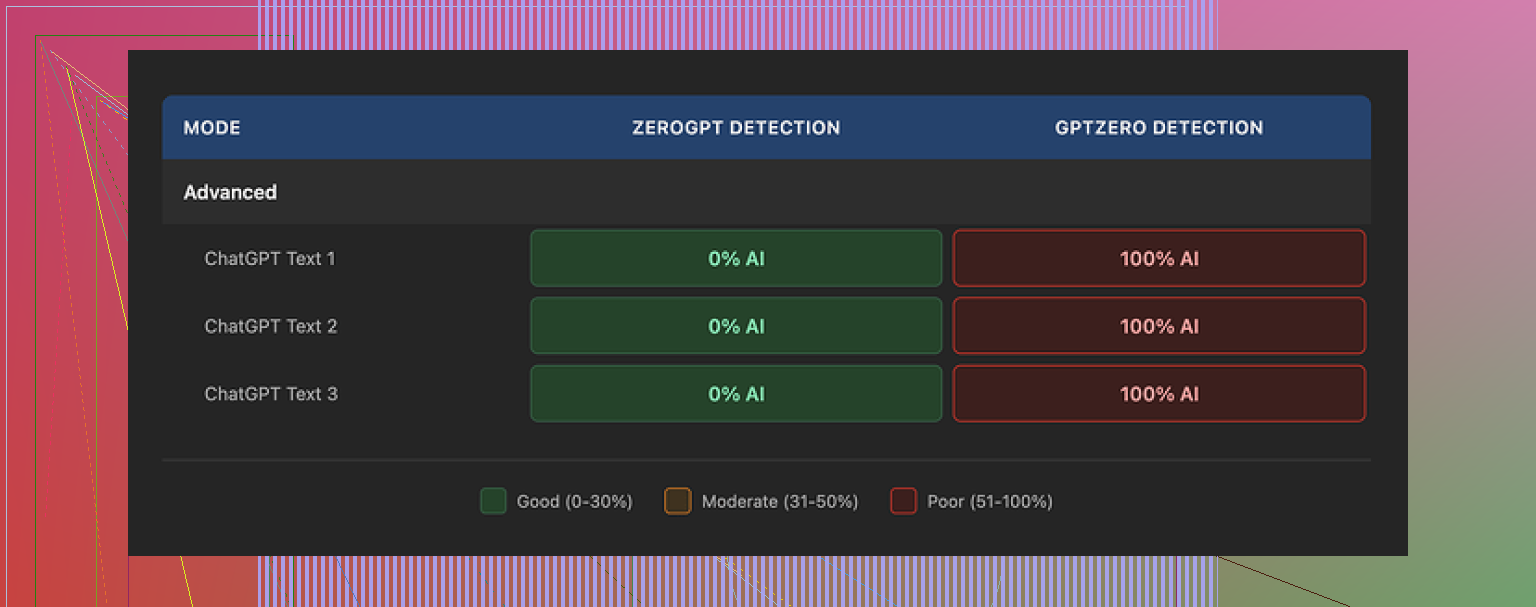 - Detector performance is inconsistent across tools, so it’s not a reliable AI-evader.