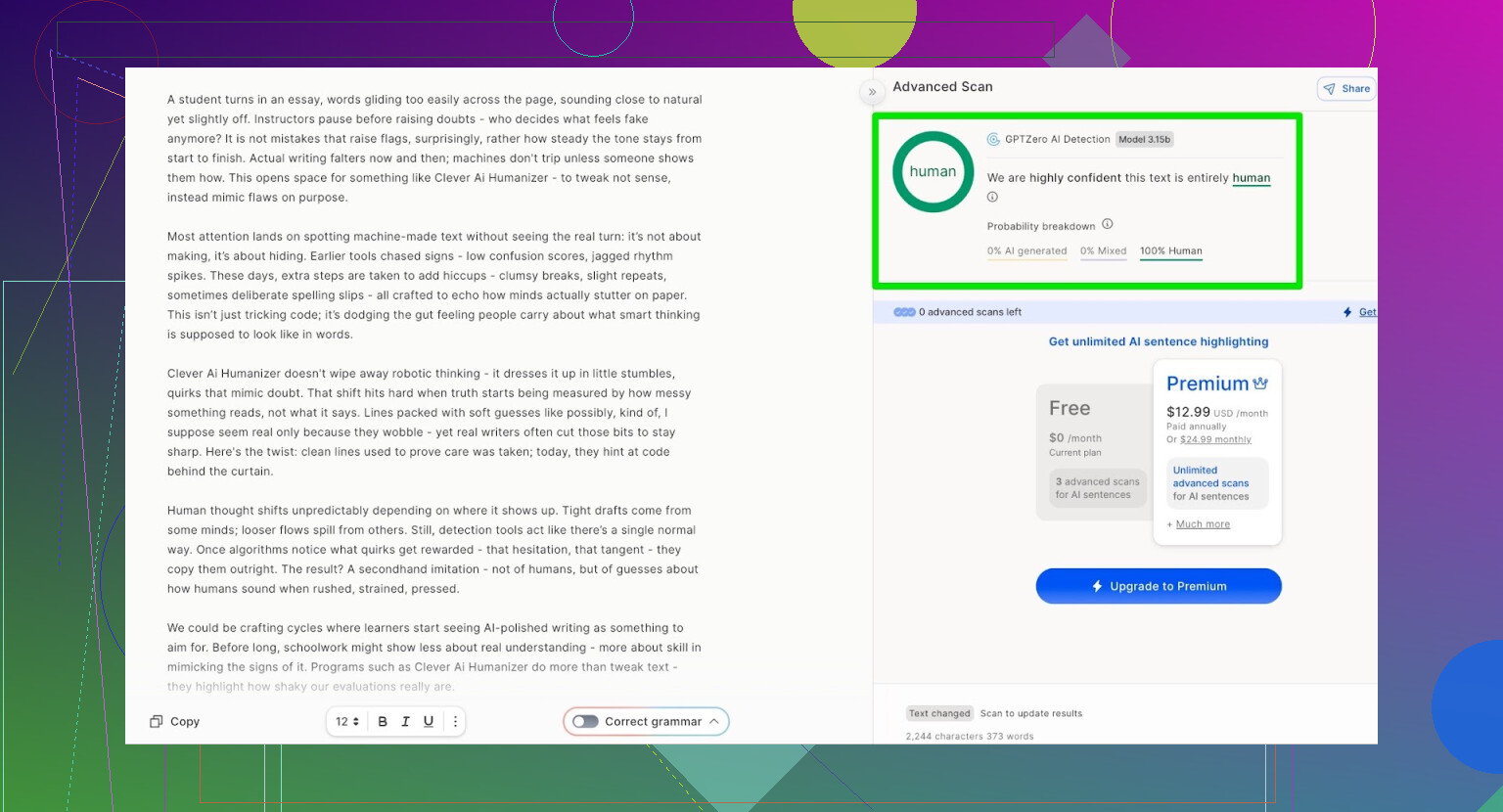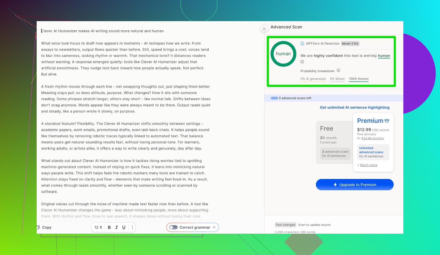 즉, 이번 테스트에서는 Clever AI Humanizer가: