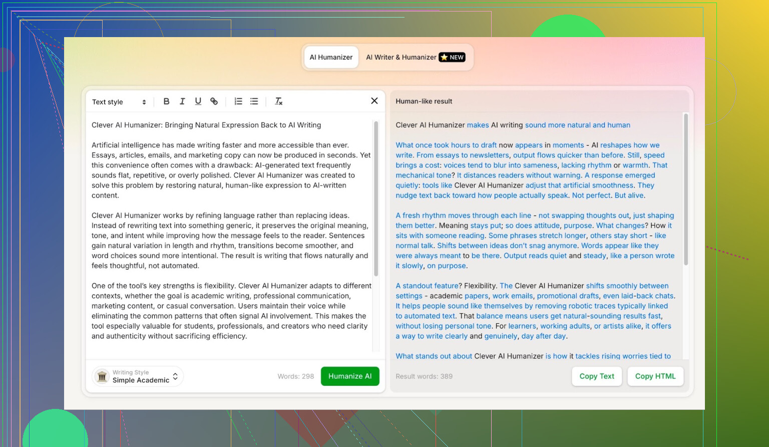 Clever AI Humanizer가 잘하는 부분