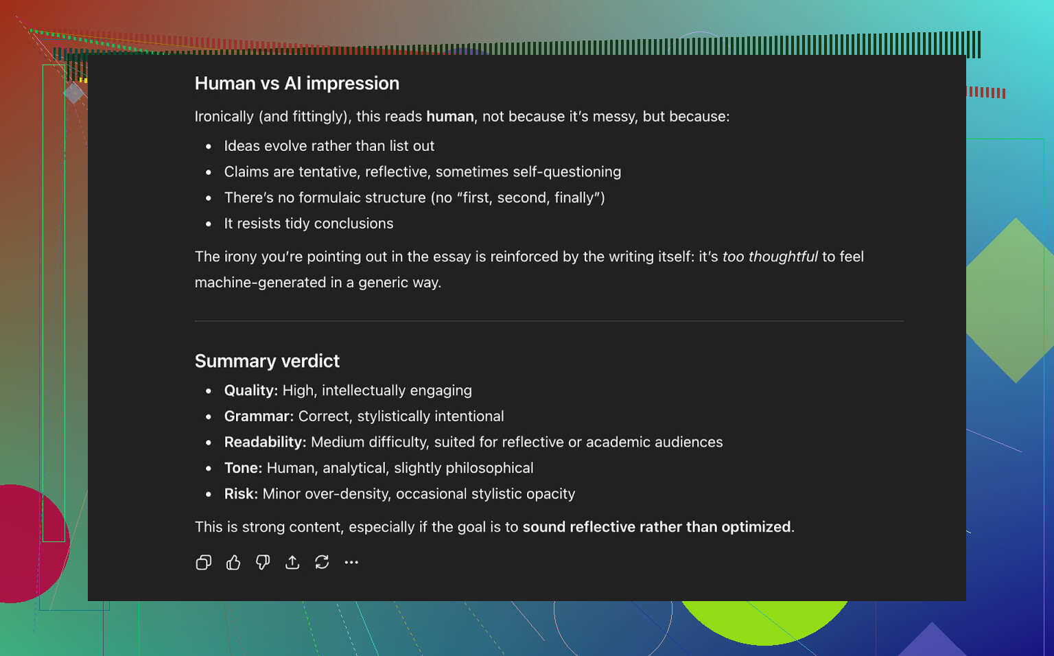 - ChatGPT 5.2에게도 인간이 쓴 텍스트처럼 보인다는 평가를 얻었습니다.