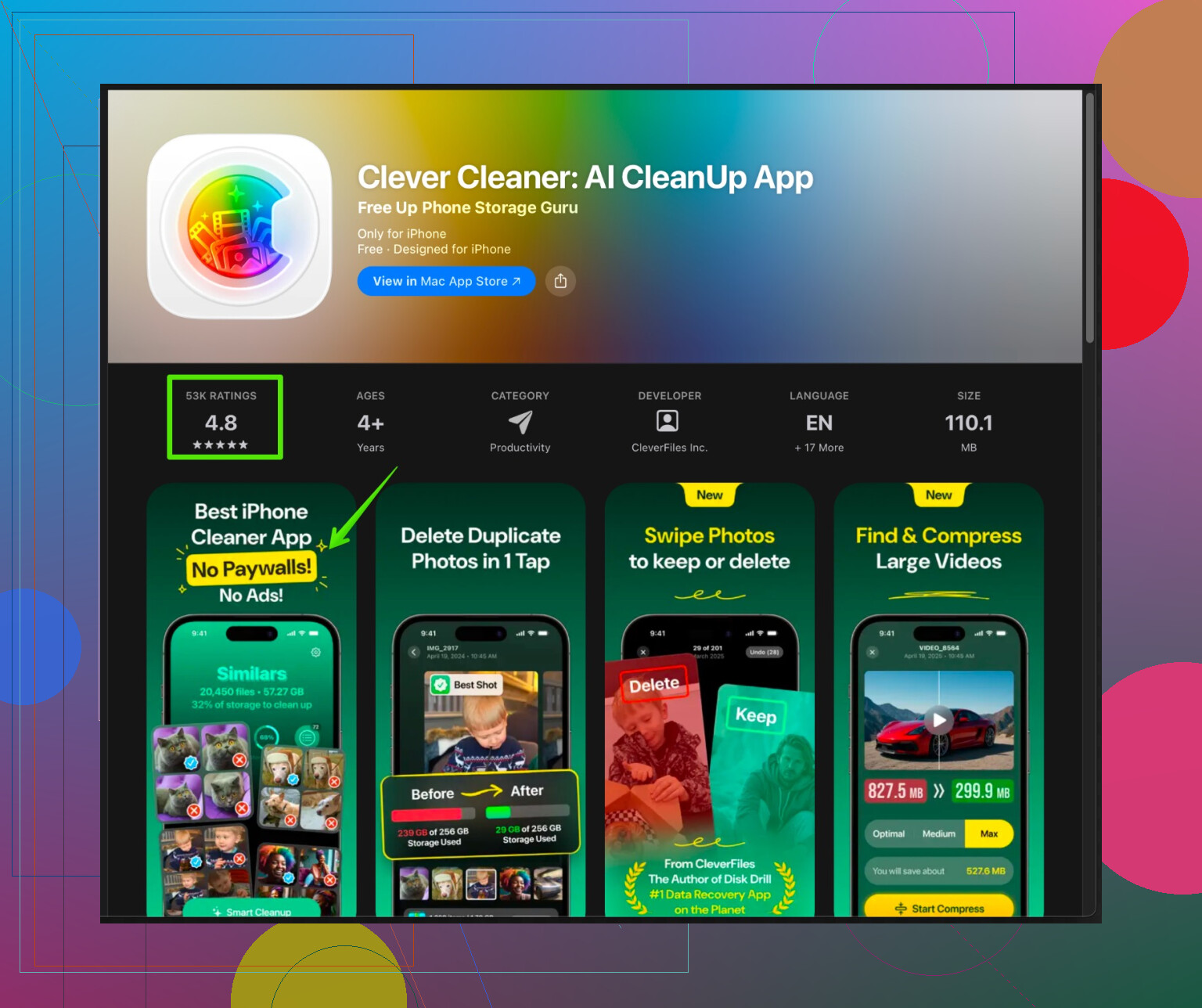 ・「Clever Cleaner App for iPhone」は、重複写真、類似写真、スクリーンショットや不要ファイルの削除に特化しています。