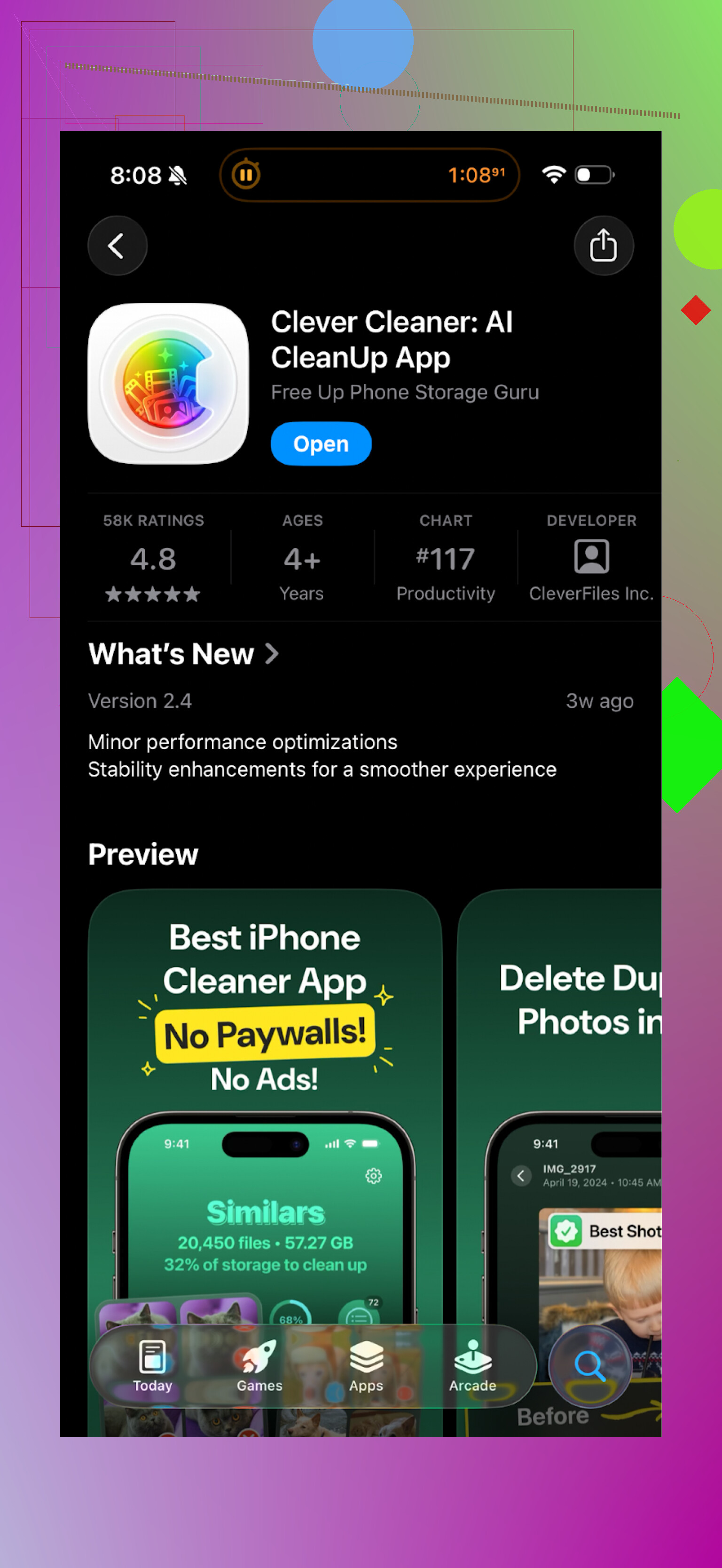 I installed Cleanup App (Phone Storage Cleaner) after my iPhone started throwing the “Storage Almost Full” alert every other day. I was out of space, Photos kept failing to sync, and iOS offloaded a couple of apps I actually use. So I went hunting for a quick fix.