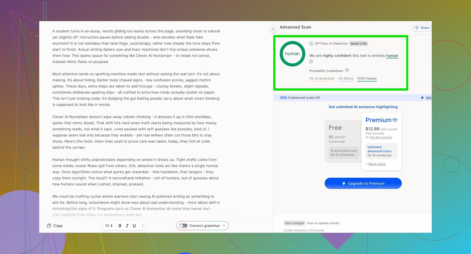 Basert på min egen testing gjorde Clever AI Humanizer det bedre enn mange andre gratisverktøy, pluss et par betalte.