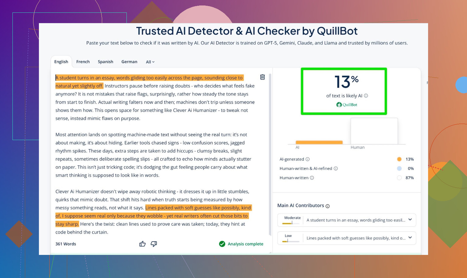 Jeg tok innholdet fra AI Writer (Casual‑stil) og kjørte det gjennom tre detektorer: