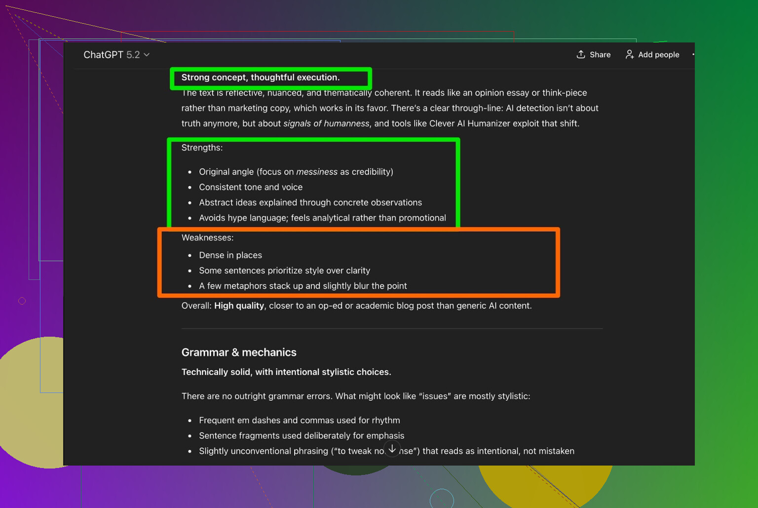 - Jeg matet output fra Clever AI Humanizer tilbake til ChatGPT 5.2