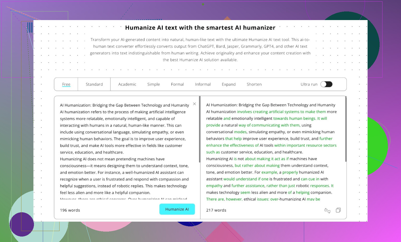 Cons? Here’s the snag: It can still leave you with prose that passes as human to bots but doesn’t sound remotely like an actual, distracted, snarky human. If you copy-pasta straight from it for mission-critical writing, expect something readable but a bit—let’s say—personality-deficient. You’ll also have to tinker for anything with idioms, jokes, or casual asides, because those still trip all over the AI tripwires.