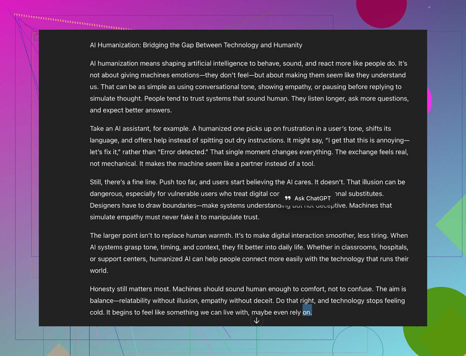 And before someone jumps in with “just use a more advanced prompt!”—nah, that’s been tried to death and all it does is shuffle grammar around. Also, Walter Writes and all the chrome extension hacks? A void filled only with typos.