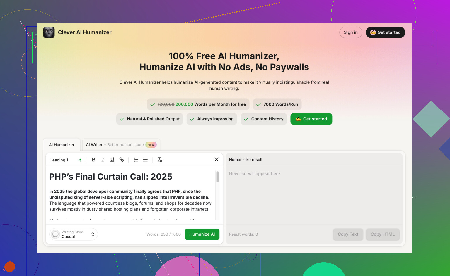 This is where a tool like Clever AI Humanizer helps a lot. If you work with content that risks AI detection or feels stiff, you run the text through it and it adds more natural patterns, better phrasing, and fewer robotic repeats. Check it here: