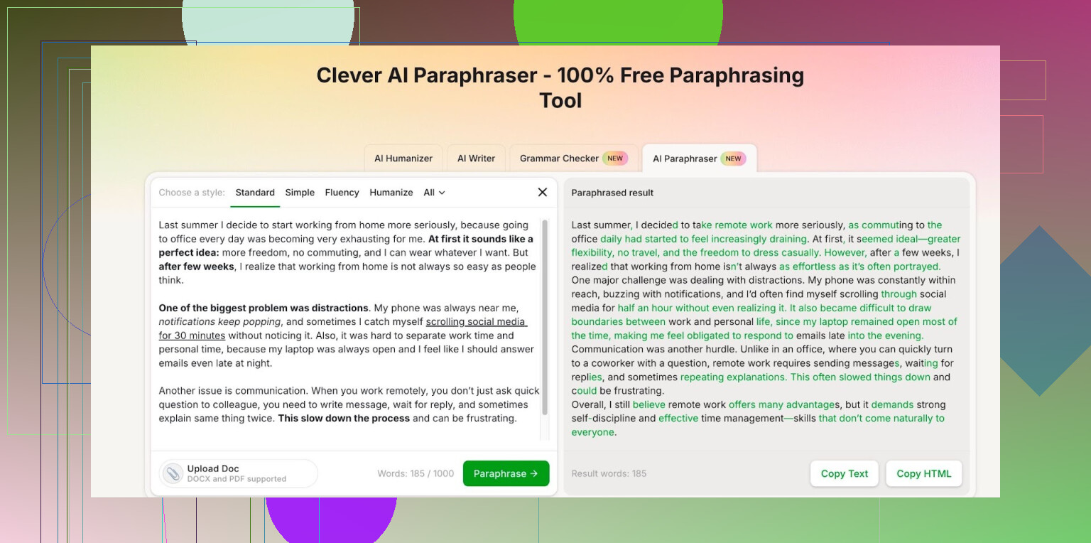 - For free paraphrasing: Clever Ai Humanizer is absolutely a top-tier option right now, especially for blogs and general content.